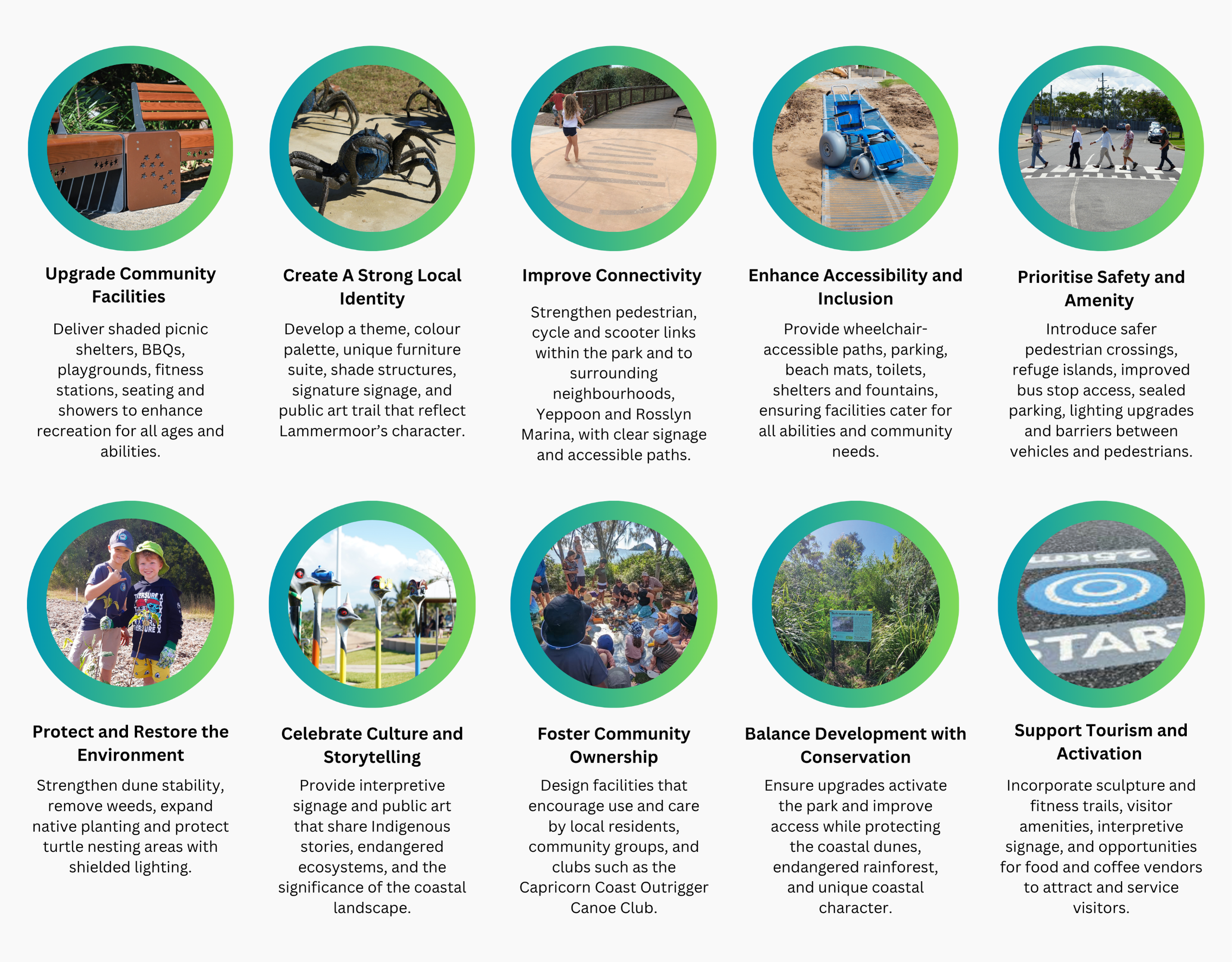 The Lammermoor Beach (South) Master Plan will provide a coordinated vision for the area, focusing on better pedestrian and cycle connections, beach access, lighting, landscaping, and environmental protection. It will also explore opportunities to reflect the area’s cultural significance and create more inclusive, comfortable community spaces.