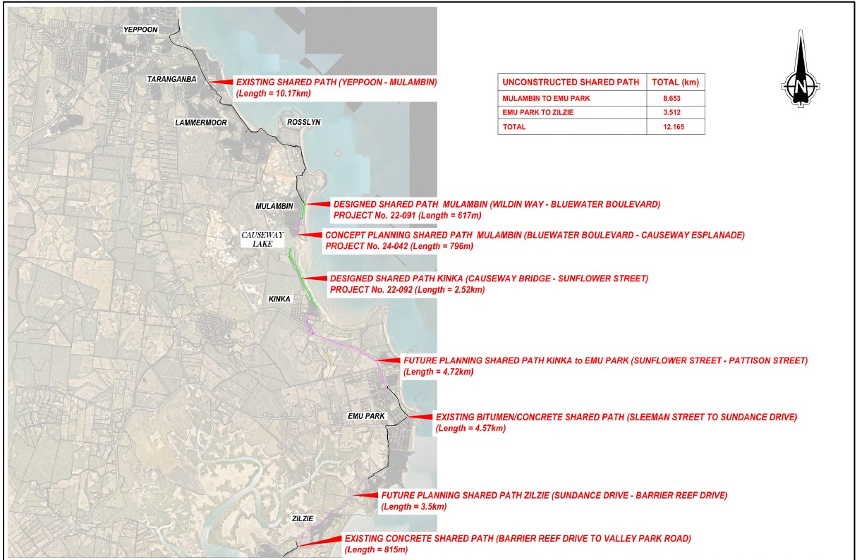 This section will play a vital role in completing the coastal shared path network, enhancing connectivity, safety, and accessibility for the Zilzie and Emu Park communities.